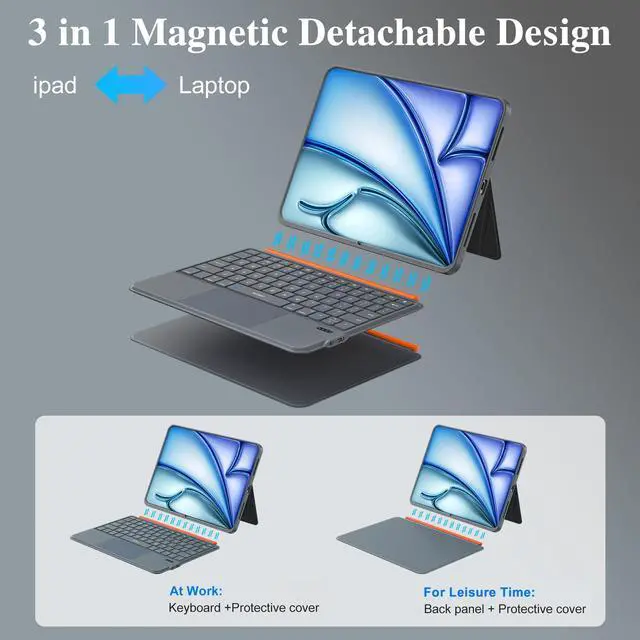 Design: Detachable magnetic keyboard case stand, strong magnets secure stable attachment. Instantly transforms iPad case into a typing keyboard or adjustable viewing stand. Suitable for movies, video calls and meetings. Ideal for office, travel, and outdoor adventures. PU Leather full-edge coverage, protects tablet from drops and scratches ^^ Slim Design &