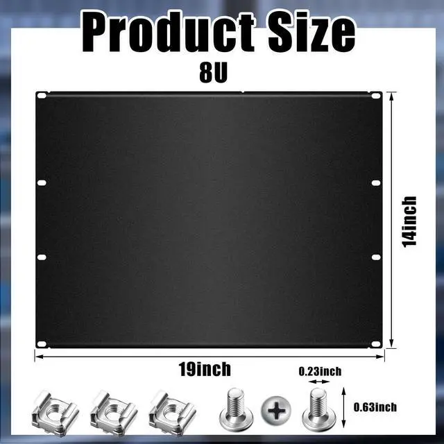 blackSize: 8U/ about 19 x 14 inches, compatible with standard 19 inch racksPackage includes: 2 x Blank panels16 x