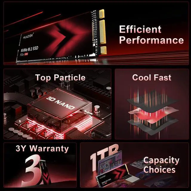 Universal Compatibility: Huadisk M2 NVMe SSD delivers instant plug-and-play upgrades for PCs and laptops, support for Windows 7 (NVMe SSDs require additional drivers), Windows 8, Windows 10, Windows11 and Linux ^^ Huadisk-Stable, Safe, Fast: Proactively protect your data with Huadisk NVMe SSD's SMART health monitoring, extend drive lifespan through TRIM optimization, and dominate high-demand tasks with enterprise-grade 200TBW endurance ^^ 3-Year