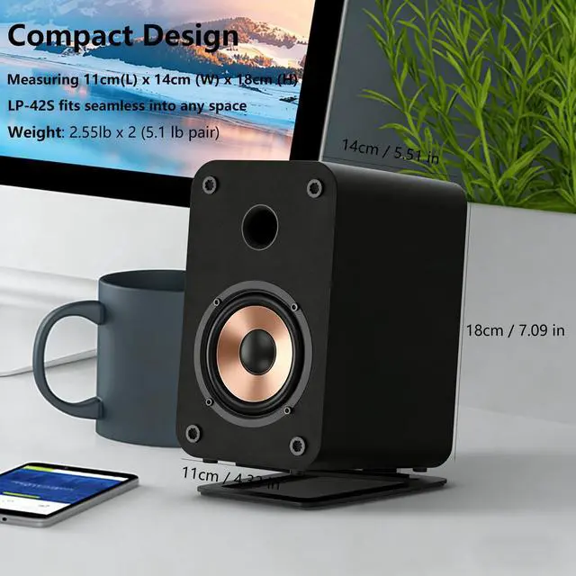[Compact and Delicate Design] Measuring 11cm (W) x 18cm (H) x 14cm (D) per speaker, with the similar width and height of an often-seen mobile, the LP-42S is suitable for any desktop setup style ^^ [Powerful Output] The 42S has a total output power of 30W RMS, consisting of 15W+15W (full-range), equipped with 3" aluminum drivers, and features a high-efficiency closed-loop Class-D audio amplifier ^^ [Multiple Inputs] Offers versatile connectivity with Bluetooth V 5.3 for wireless streaming, and both AUX, USB inputs and 3.5 mm Earphone jack for wired connections ^^ HIGH-RESOLUTION AUDIO Take your digital music collection to another level with High-Resolution Audio.