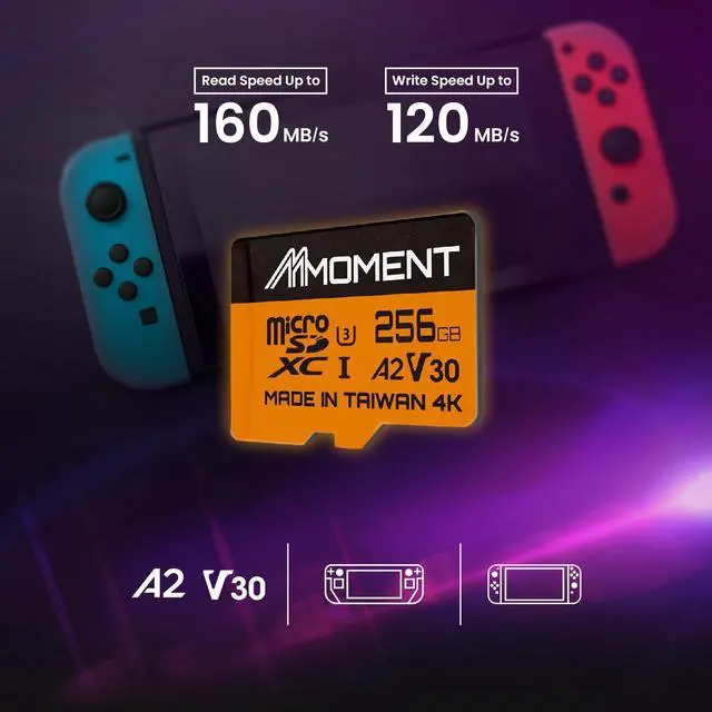 MMOMENT 256GB Micro SDXC Card, A2, UHS-I, U3, V30, Class 10 Compatible, Read Speed Up to 160 MB/s, Write Speed Up to 120 MB/s, SD Adapter Included