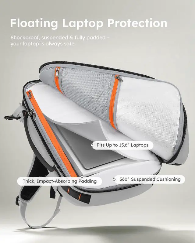 Quick Laptop Access & Shockproof ProtectionYour tech deserves better protection. This laptop backpack features a shock-absorbing, suspended laptop sleeve (fits up to 15.6" ) to guard against bumps and drops. The side-access zipper lets you grab your laptop instantly - no need to open the main compartment. Perfect for commuters, students, and busy professionals always on the move. ^^ TSA Approved & Effortless Airport TravelTravel smarter, not harder. This TSA-friendly Tolaccea carry on backpack opens 180 flat, letting you breeze through airport security without unpacking your tech. Approved by most U.
