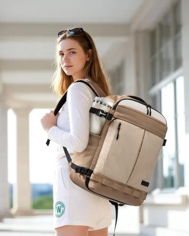 Keep clean and worn items separated for a more organized, stress-free packing experienceideal for airplane travel essentials. ^^ Security&TSA-FriendlyThe rear anti-theft laptop compartment keeps your device safe while allowing quick access during airport security checks. No more fumbling at checkpoints move through security smoothly and confidently. ^^ Comfortable for All-Day TravelBreathable padded straps and an adjustable chest buckle reduce shoulder strain. The luggage strap slides over your suitcase handle, making this carry on bag a smart choice for hands-free airport transfers and daily commuting.