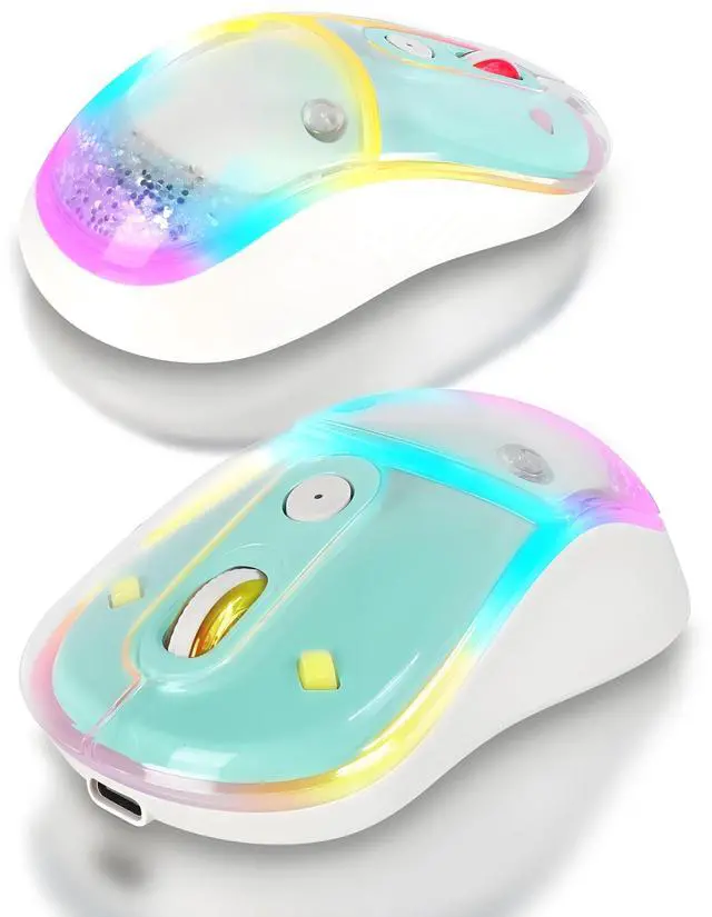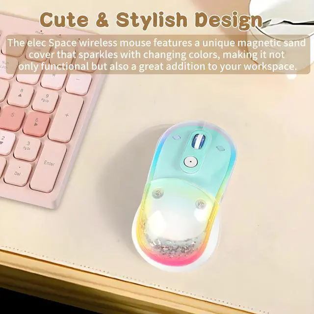^^ **Stunning Aesthetic**: The KUYHRF wireless mouse showcases a unique magnetic cover design with a mesmerizing liquid sand effect and colorful LED lights, combining beauty with functionality.