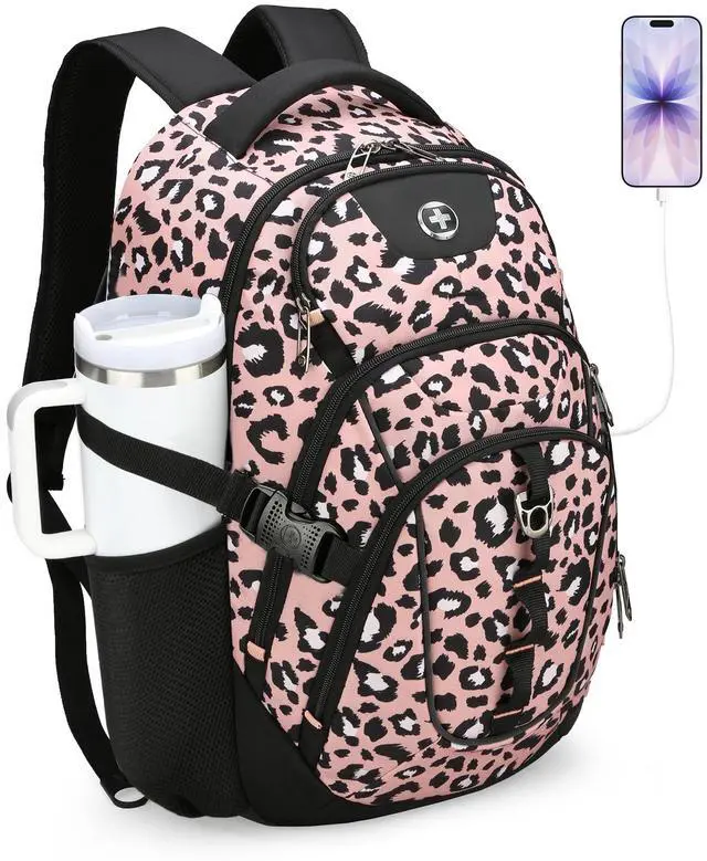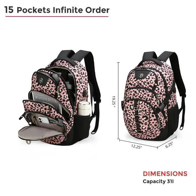 Multiple Pockets: This computer backpack features a multi-layered storage system including 1 front and 2 side quick-access pockets for on-the-go items. This bookbag also comes with a luggage strap, letting you attach it to suitcases for one-handed pulling during travel ^^