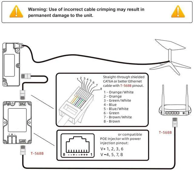 RJ45 Adapter for Satellite: Connect the for Dish V2 to the PoE injector using the adapter to transmit data through the satellite Ethernet cable, allowing seamless integration with routers or desktops, laptops for enhanced connectivity.
