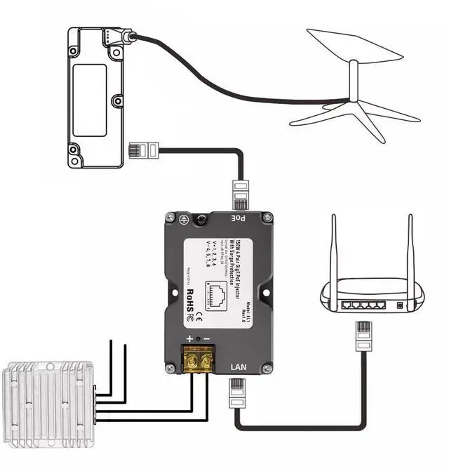 Comprehensive Safety: Featuring a 4857V DC input range, this PoE injector accommodates standard for satellite cables and traditional cables for easy connection to computer ports, providing and discharge safety to ensure usage and prolong the lifespan of devices in various environments. 4.