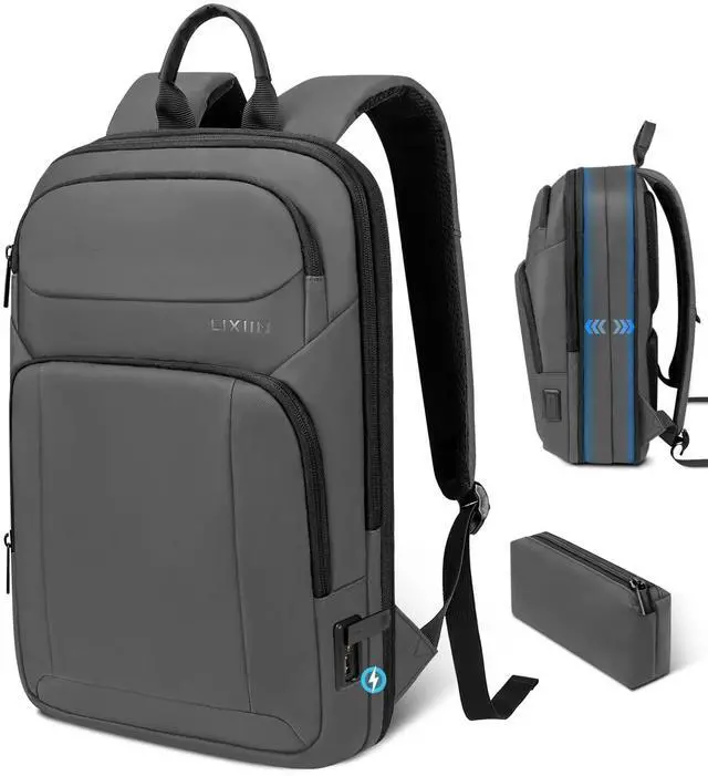 The slim laptop backpack for men has Multiple specialized compartments keep your items organized and easily accessible. ^^ Anti-theft Backpack. There is a theft-proof pocket on the front of the laptop backpack for men with a hidden zipper. You can put your cell phone, headphones, and other items that you need to use at any time in it.. There is a quick-access pocket on the side of the back of the slim backpack for men. You can take out items without having to put down your heavy smart backpack, which is very convenient.