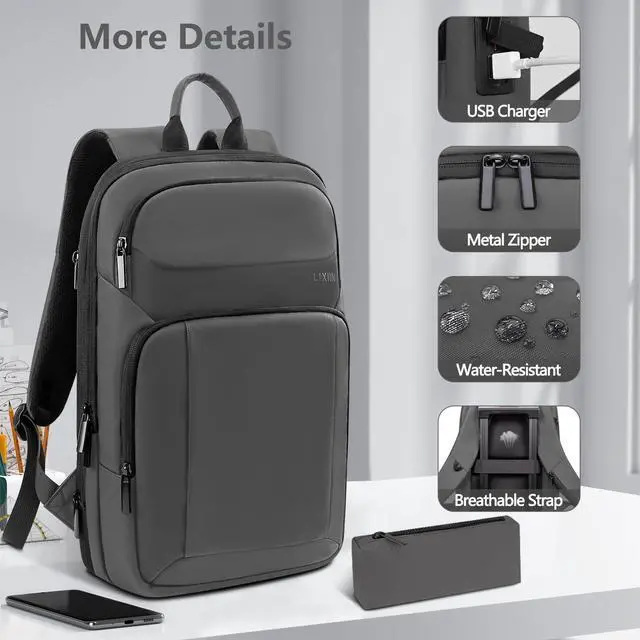 ^^ Comfortable & Easy To FindThe small laptop backpack features ergonomic S-curve shoulder straps with breathable padding. The adjustable straps significantly reduce shoulder and back pressure. Lixiin waterproof laptop backpack is made of tear-resistant nylon fabric, Which is wear-resistant and durable. The mens laptop backpack has Multiple specialized compartments keep your items organized and easily accessible. ^^ Gift & ServiceThis business laptop backpack is professionally designed by our expert team. They make great gifts for friends and family on holidays or birthdays. The store offers a one-year warranty. If there is any problem please contact our store in time, we will solve your problem within 24 hours.