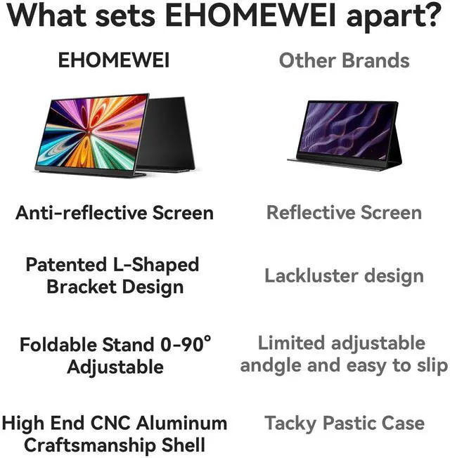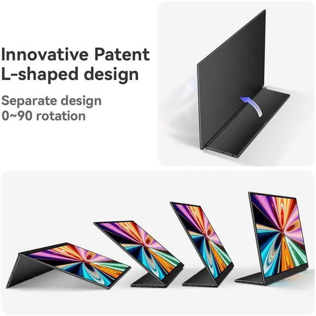 The four sided ultra narrow border design brings you an immersive visual experience. ^^ Portable & versatile second screen 100% sRGB. The lightweight and portable design, built-in bracket, make it easy to use as a laptop pc, the second screen of mobile phones and game consoles allows for work, entertainment, or streaming anytime, anywhere. ^^ Eye care & HDR ready. Equipped with a flicker free blue light display, it can reduce eye fatigue, and the 400 Nits high brightness and HDR support can provide vivid and realistic colors in any lighting conditions, no flickering and blue light technology can reduce eye fatigue during long-term use and protect your vision.