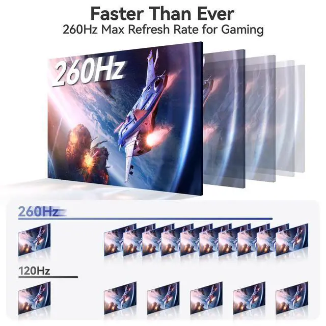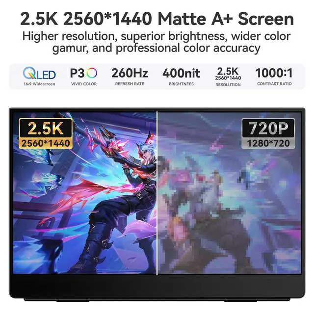All-in-one connectivity. Delivery protection device, including all wiring required for plug and play settings, ensuring seamless connection with various devices, and set it to horizontal or vertical mode as needed, the smart shell made of PU magnetic material can protect the screen from scratches and carry a portable stand. ^^ Ultra-Smooth 260Hz 2.5K QLED gaming experience. The QLED 2.5K 260Hz refresh rate and freesync technology eliminate screen tearing and stuttering, providing an advantage for all your gaming tasks and bringing you an immersive gaming experience, enjoying a buttery smooth gaming experience.