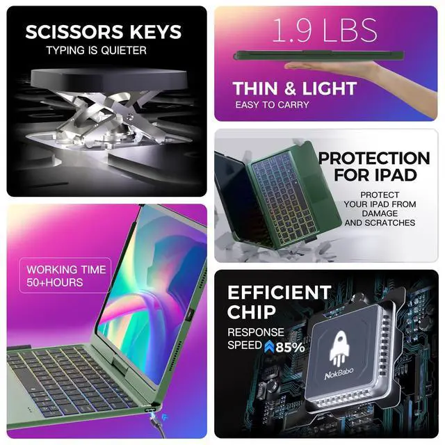 In addition, there is a row of iOS shortcut keys on the top of the keyboard, allowing you to quickly adjust the brightness and volume of the iPad. It is a rechargeable wireless keyboard that connects via Bluetooth, providing a hassle-free user experience. ^^ 1-Year Product Service Within 1 year after purchase, if you encounter any issues with your iPad 10th generation case with keyboard, NOKBABO will provide a replacement for the 10th gen ipad case with keyboard within 1 year. We will arrange a professional after-sales team for you, your questions will be replied to within 12 working hours, allowing you to fully enjoy the high-quality service provided by our product.