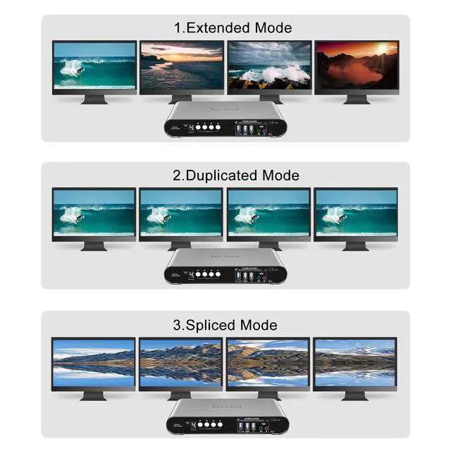 [Windows Only] - This model is exclusively for Windows. Unlike traditional Quad monitor DP KVMs that require 4 DP ports from each computer, our KVM switch takes advantage of the MST feature, enabling two DP ports per computer to handle four DP 4K@60Hz displays.