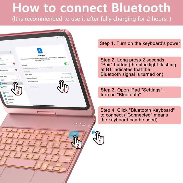 How to connect: When the ipad 10th generation case with keyboard is fully charged for 2H.