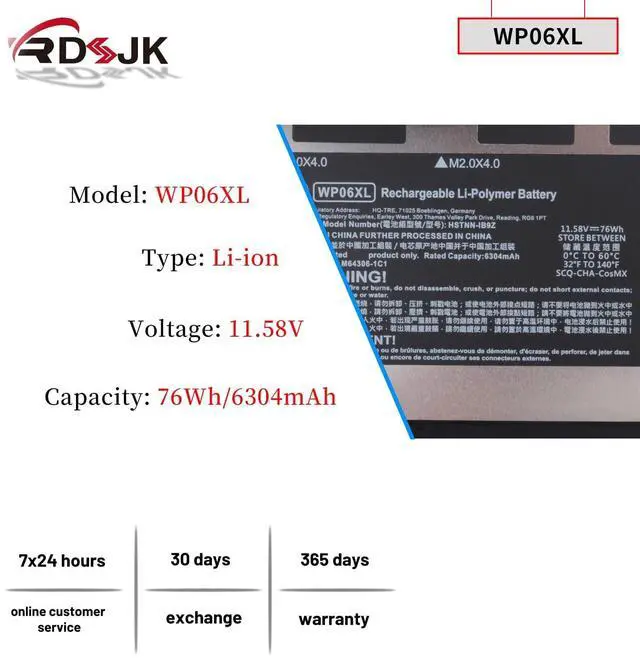 Part Numbers: WP06XL M73470-005 HSTNN-IB9Z M64306-1C1 M64306-171 M64308-171 WP06076XL WP06076XL-PLNote: Please check if this battery is compatible with your computer before purchasing. If you are not sure for that, please contact us!