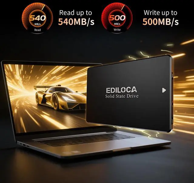 • High-Speed Performance UpgradeAchieve blazing-fast speeds of 540MB/s read and 500MB/s write with EDILOCA 2.5" SATA III SSD, 3x faster than traditional HDDs. Perfect for accelerating system boot, game loading, and large file transfers. (The interface SATA Rev. 3.0 (6Gb/s) is backward compatible with SATA Rev. 2.0. )
