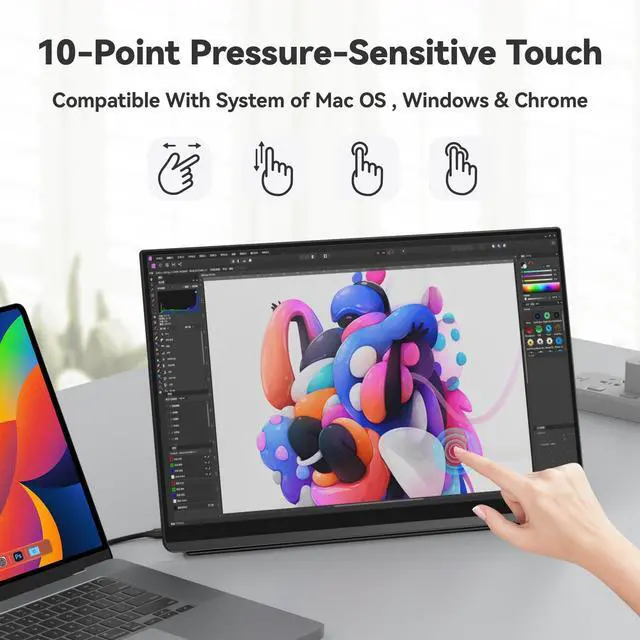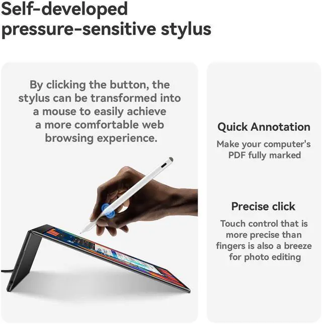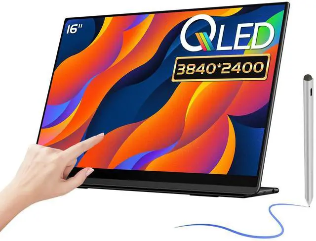 Ultra-Smooth 4K 3840*2400 60Hz QLED gaming experience. The QLED 4K 3840*2400 60Hz refresh rate and freesync technology eliminate screen tearing and stuttering, providing an advantage for all your gaming tasks and bringing you an immersive gaming experience, enjoying a buttery smooth gaming experience. ^^ A crystal clear 16" QLED screen display with a resolution of 3840*2400. The 16" 3840*2400 High-resolution portable display screen provides an astonishing aspect ratio of clearer, more realistic, and vivid images, accommodating more screen space, at the same time, the 900g is easy to carry, helping you work efficiently anytime and anywhere or connect gaming devices for gaming.