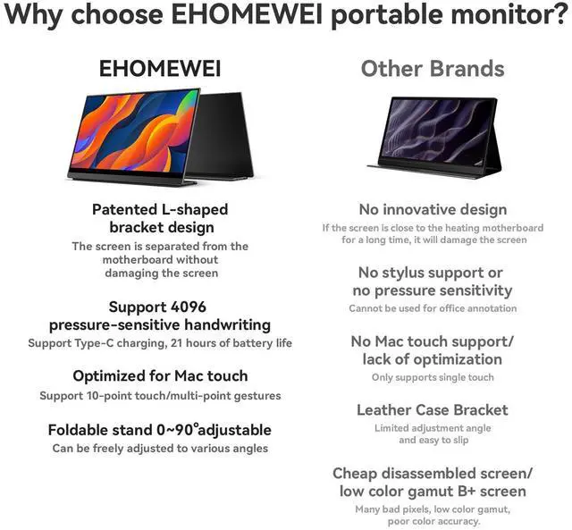 The four sided ultra narrow border design brings you an immersive visual experience. ^^ Portable & versatile second screen 100% sRGB. The lightweight and portable design, built-in bracket, and vesa installation compatibility make it easy to use as a laptop pc, the second screen of mobile phones and game consoles allows for work, entertainment, or streaming anytime, anywhere. ^^ Eye care & HDR ready. Equipped with a flicker free blue light display, it can reduce eye fatigue, and the 400 Nits high brightness and HDR support can provide vivid and realistic colors in any lighting conditions, no flickering and blue light technology can reduce eye fatigue during long-term use and protect your vision.