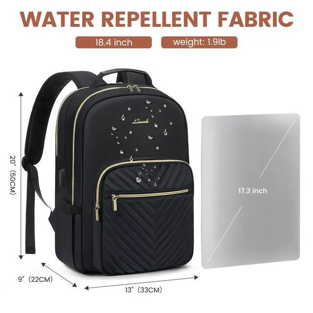 Upgraded Laptop Backpack Women: Classic V-shaped embroidery thread. Upgraded double LOVEVOOK no-slip metal zippers, water resistant Nylon fabric with polyester lining, ensures long lasting usage. Total of 4 compartments and 16 pockets for your computer, A4 folder, bottles, umbrellas, clothes, work supplies, college supplies and travel essentials.