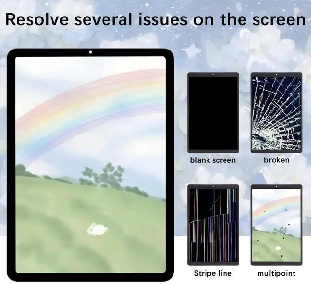 Adhesive tapeInstallation Tips: 1. If you have no experience with installing screens, it is not recommended to install screens directly. For installation, you can contact professional maintenance personnel. If you need help, please contact us. We will respond to you as soon as possible. 2. It is recommended to turn off the power supply before installation. Avoid tablet failures. 3. when replacing the LCD components. Please select the correct installation tool. And put them in the right place. Note that different screws are not suitable for all cases. Using the wrong screw can easily damage the screen. 4. The screen of the tablet is a glass product, please place the screen carefully when unpacking or installing. Do not push objects to the edge or corner of the screen. It's easy to break. Screen damage during installation that does not fall within our after-sales area. 5. Please do not bend the LCD cable too much. Over 90 can cause a black display. 6. If after installation lines appear on the screen or the screen cannot be touched.