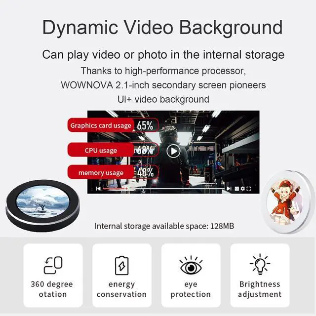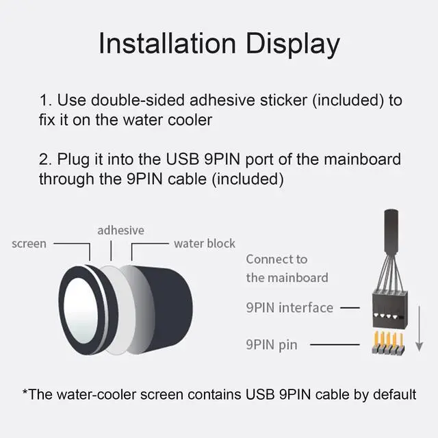 Display aio cooler computer's temperature and usage of CPU, GPU, RAM and HDD Data etc. Personalize your wallpaper with your favorite images, such as GIFs, memes, logos, or any other pictures or short videos that you choose. with 480x480 resolution and ultra-bright backlight. ^^ Compatible with any Liquid CPU Cooler, easy installation with a 9PIN Cable (Included) ^^ With our self-developed software, you can create a fully immersive ecosystem for your setup, with intuitive controls that bring everything together seamlessly.