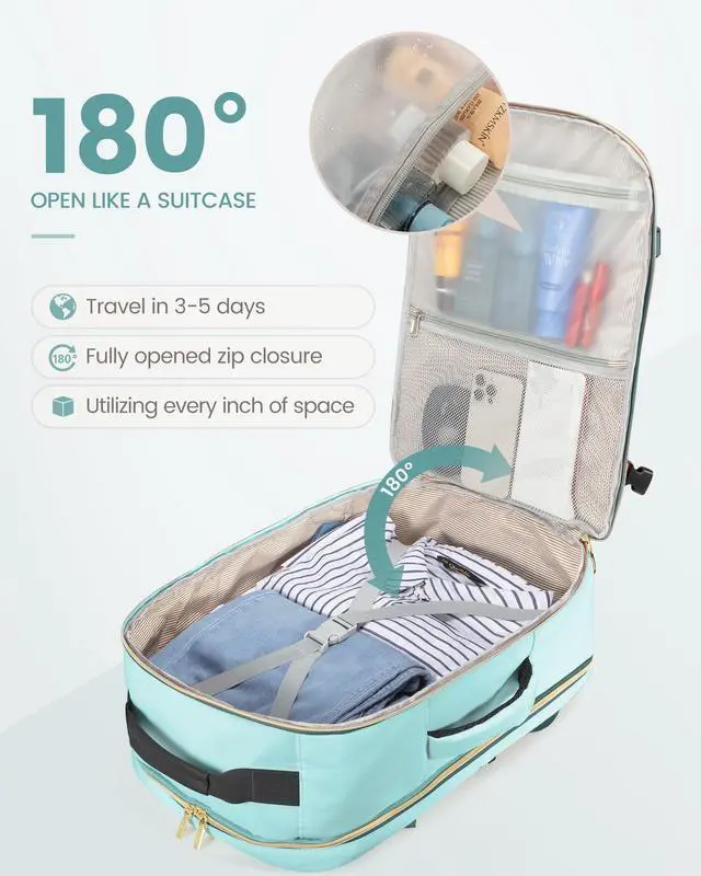 As Personal Item Airline Approved: The size of the carry on backpack is 18*14*8inch. Meets the maximum size allowed by most International Air Transport Association (IATA) flights, and can be placed in the overhead luggage compartment and under seat luggage for airlines, suitable for Spirit, Frontier, Easy Jet, Jet Blue, and other airlines. This travel backpack for women airline approved can be freely opened 90-180 degrees easily and quickly at the airport security check. ^^ With 3