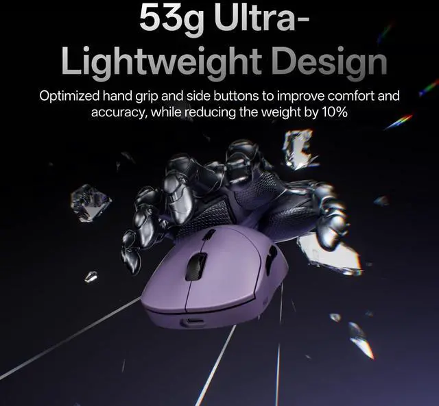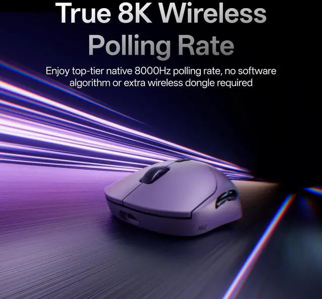 53g Ultra LightweightFeaturing optimized hand grip and more easy-to-access side buttons, the VT2 MAX has significantly improved the comfort and accuracy of use, while reducing the weight by 10% - taking your gaming performance to next-level with less strain on your hand and wrist. ^^ Up to 750 Hours Battery LifeUpgraded with Nordic nRF54L15 MCU that integrates an ultra-low-power wireless technology, VT2 MAX manages to make wireless gaming mouse no longer dependent on frequent charging - with an unbeatable 750 hours battery life at 1000Hz. ^^ True 8K Wireless Polling RateEnjoy top-tier native 8000Hz wireless - no longer relying on software algorithm or extra wireless dongle, VT2 MAX provides a solid 8k wireless performance even in noisy tournament environments.