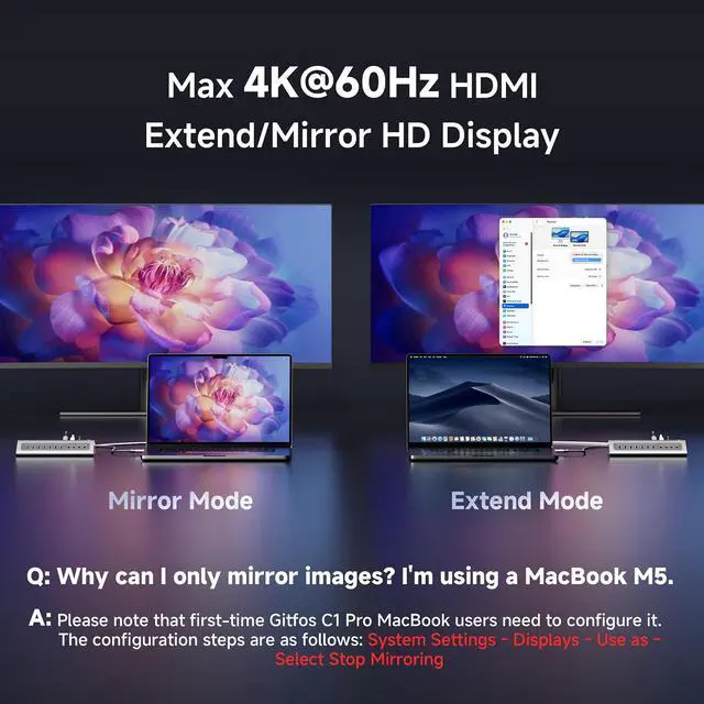 Data Transfer: Charge your Macbook with ease using the 100W USB-C PD charging port while connecting multiple peripherals for data transferring, don't worry power storage. The 10Gbps USB 3.2 ports, which is 20 times faster than a USB 2.0 port. It can transfer files, audio, and video efficiently in seconds to external devices, work with effortless efficiency.