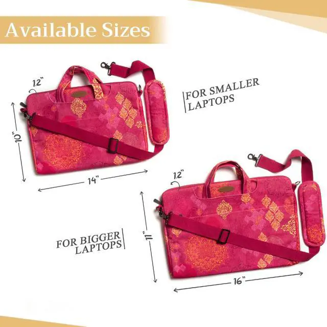 Artsy Designs and Vibrant patterns in vibrant colors provide huge visual interest, setting our bags apart. It is a versatile choice for just daily use, travel or commuting and a true delight to carry around. ^^ Comes in two sizes o Small 14 Width, 10 Length, 1.2 Deep (Outer dimension) Compatible with 12- 13.3 Laptops / Ultrabooks, 13- 13.5 Laptops / Notebooks / Ultabooks. o Large 16 Width, 11 Length, 1.2 Deep (Outer dimension) Compatible with 15 Macbook air / Macbook pro, 15.3 ipad pro and most 14- 14.56 Laptops / Notebooks / Ultrabooks.