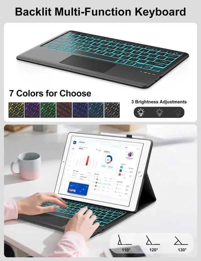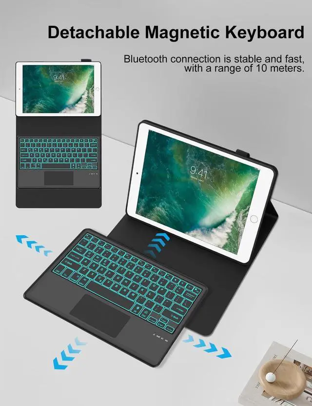 Portable Shortcut KeysThe smart keyboard case for pro 12.9 A1584 has shortcut function keys, allowing you to enjoy the excellent versatility for samsung galaxy tablet case for typing, reading and gaming. Auto Sleep & Wake FunctionFor A1670 tablet case keyboard will automatically put the tablet screen to sleep or wake up when you open or close it, which helps protect and save battery life, extending the time you use your tablet. Gift ChoiceIf you are at a loss for gifts ahead of Christmas, Thanksgiving, Mother's Day, Father's Day, or birthday, then a tablet case with magnetic keyboard is a thoughtful gift for parents/children/friends/colleagues! How to connect to Bluetooth? 1. Please fully charge the keyboard and turn it on (usually 2-3 hours). 2. Press the keys Fn+C to turn on the Bluetooth of the keyboard. 3. Turn on the Bluetooth of the Tablet. 4. Find and select "Bluetooth Keyboard", it will automatically connect.