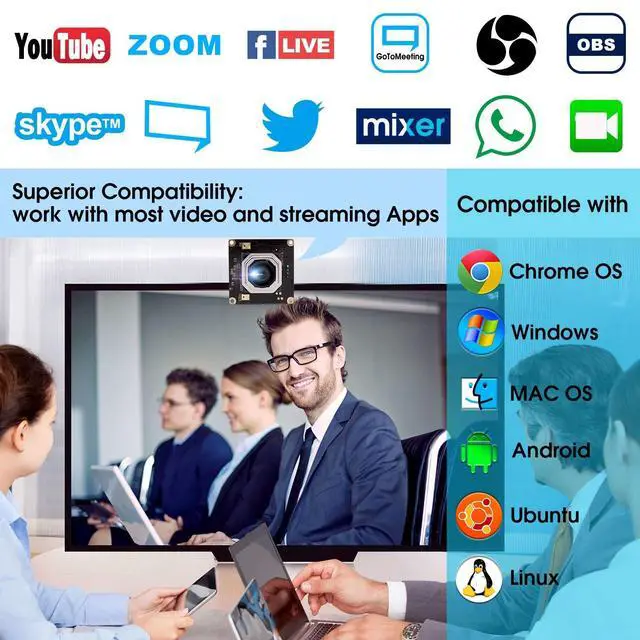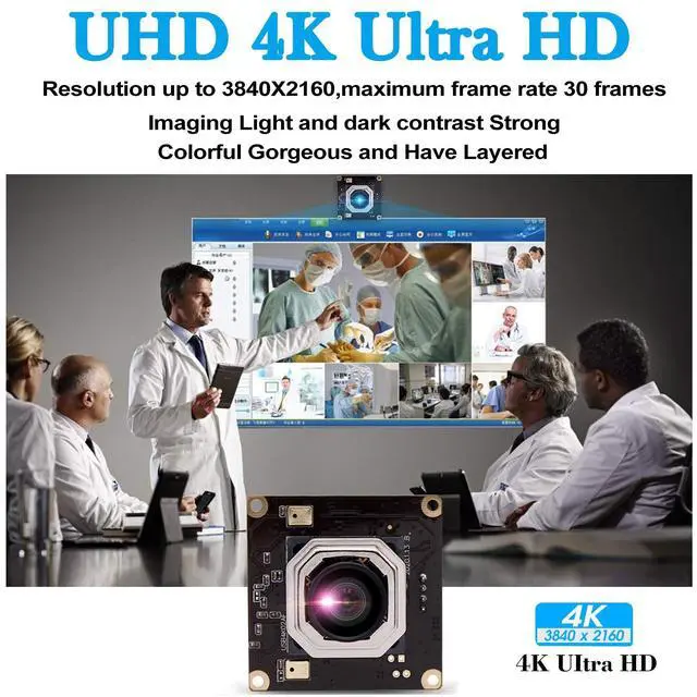 MJPEG/YUY2 compression format. ^^ Wide Application- 4K UHD Webcam with super small outline and thin profile for embedded applications, Compact camera for all kinds of machine vision, Wide application for 3D scanner, VR camera, electronic microscope, medical machine, automated image acquisition system. ^^ Best Universal Compatibility- 4K webcam usb camera is versatile for Skype, OBS, Zoom, GoToMeeting, Facebook LIVE, and YouTube Livestreaming services, widely works with WinXP/Vista/Windows 7/8, Windows 10 Linux with UVCabove linux- 2.6. 26MAC-OS X 10.4. 8 or later Wince with UVC Android 4.0 or above with UVC.