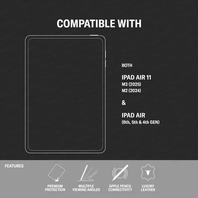 COMPATIBILITY - TORRO leather iPad case designed and crafted exclusively for iPad Air 11" M3/M2 & iPad Air 5th and 4th Generation (2025, 2024, 2022 and 2020 release). The precision fit ensures full unrestricted access to the screen, camera, buttons and charging ports. ^^ GENUINE LEATHER - TORRO are a UK company specialising in luxury leather goods handcrafted from premium cowhide leather. The top-grain leather used is sourced from the finest tanneries in the US and undergoes minimal treatment in order to preserve the natural properties and appearance of TORRO luxurious leathers.