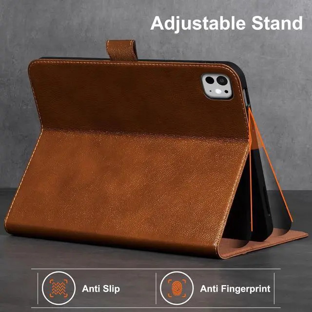 Gexmil Leather Case for iPad Pro 11 Inch (M5/M4) 2025/2024 with Magnetic Closure Adjustable Stand,Protective Shockproof Leather Smart Folio Cover Auto Sleep/Wake Anti-Slip,Yellow Brown