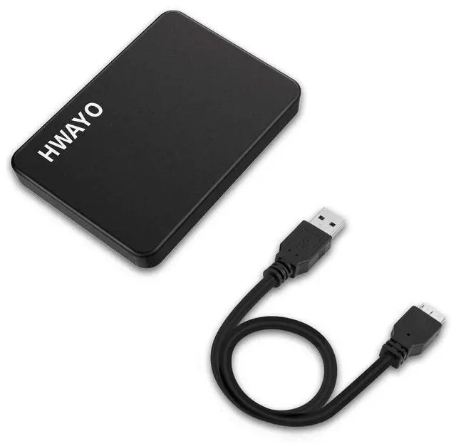 HWAYO Portable External Hard Drive1. HWAYO portable hard drives with USB 3.0 and SATA port offer reliable, fast data transfer rates and universal connectivity with USB 2.0 and USB 3.0 devices. It's a great gift choose. 2. Simple & Ultra slim - Sleek, all aluminum enclosure for durability, Seamless connection. The small, light weight enclosure features massive capacity and high quality and reliability. 3. Plug and Play - This external drive is ready to use without external power supply or software installation needed. 4. Ultra-fast Data Transfers - Works with USB 3.0 and SATA cable to deliver, allows up to 6Gbps transfer speed.