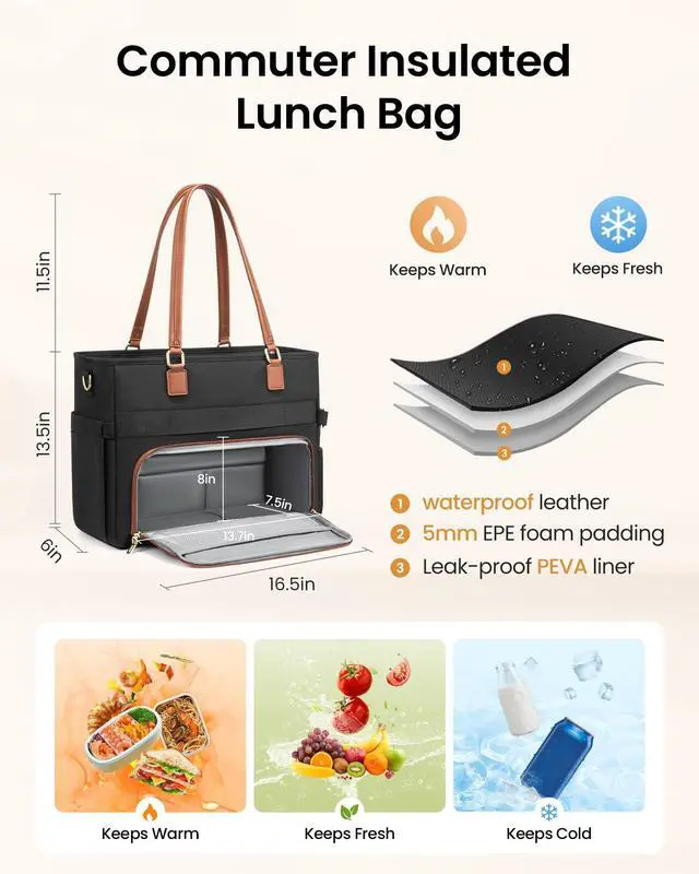 Three-in-One Teacher BagDesigned as your ultimate daily carryall, LOVEVOOK 3-in-1 tote bag with lunch compartment, a dedicated padded tech zone, and an accordion file organizer. No more juggling multiple bagscarry your meal, devices, and documents in one stylish, organized package for work, school, or the library. ^^ Accordion File Organizer & Multiple Pockets Design This LOVEVOOK teacher tote bag features 13 extra pockets for total organization. The front accordion file organizer neatly stores A4 papers, documents, and foldersperfect for lesson plans, handouts, or meeting notes.