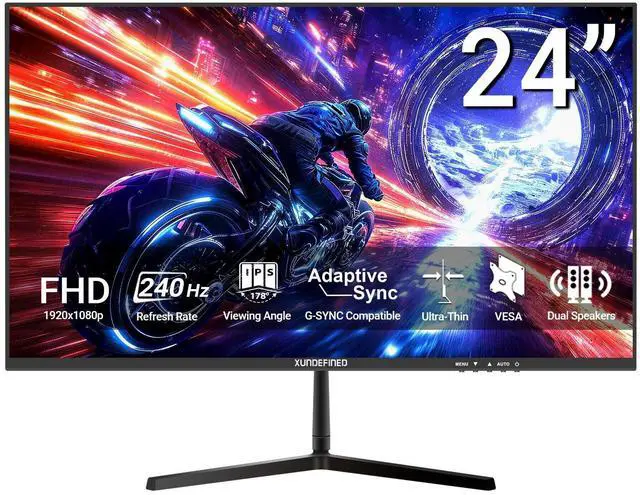Stunning Full HD Clarity, Experience crystal-clear visuals with 1920x1080 resolution on the XUNDEFINED monitor. Enjoy vibrant, lifelike colors, razor-sharp details, and an immersive viewing experience perfect for movies, gaming, and everyday use ^^ Seamless Adaptive Sync Technology, Eliminates screen tearing and stuttering by dynamically matching the monitor's refresh rate to your GPU's frame output, delivering buttery-smooth gameplay and fluid video playbackeven in intense, fast-paced scenes with no lag or interruptions ^^ Ultra-Smooth, Eye-Friendly Performance, Enjoy buttery-smooth gameplay with a blazing 240Hz refresh rate that eliminates motion blur, ghosting, and screen tearing for crystal-clear action in fast-paced games.