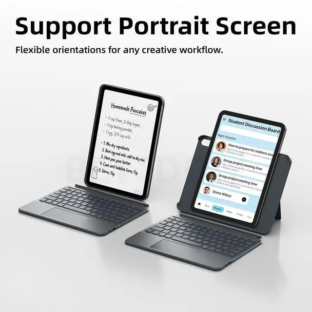 ^^ Five Placement Modes: This iPad 11th/10th Generation keyboard is easily detachable due to its magnetic attachment. It can alternate between five placement modes for reading, working, studying, watching movies, and sketching.