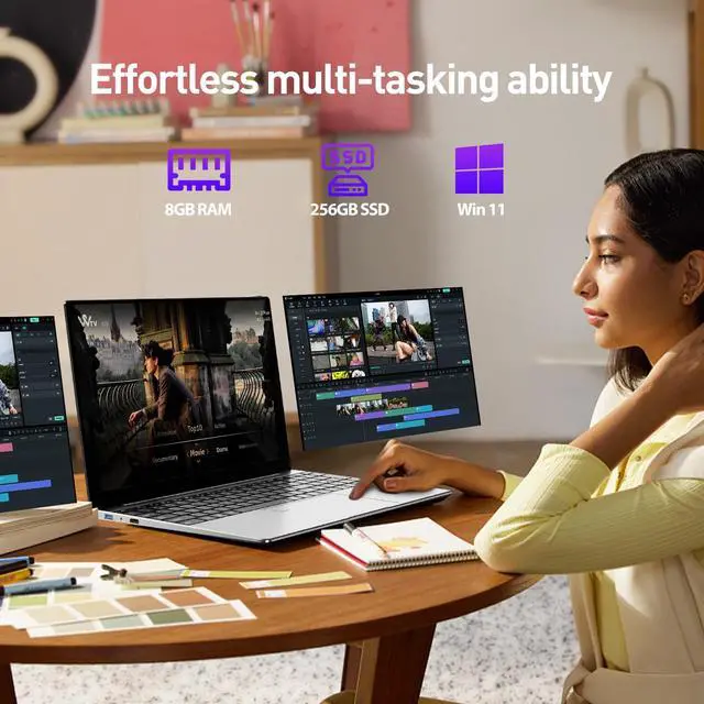 Additionally, its integrated UHD graphics, it is perfect for enjoying casual games. ^^ Upgraded Storage Space- The Wvryrv laptop comes with 8GB of RAM for faster system operation and responsiveness. It also comes with a 256GB SSD hard drive that provides enough space to store system files and big games. You can expand the storage to 512 GB using a TF card or upgrade the SSD to 1 TB to ensure enough space for most applications and multiple workflows. ^^ Extensive Connection Ports- The laptop is equipped with 2xUSB 3.0 ports, 1x HDMI, 1x TF card slot, 1x Headphone Jake, 1x DC Power Jack, This device offers strong wireless connections with 2.4G +5G WiFi and Bluetooth 4.2 for swift downloads and streaming.