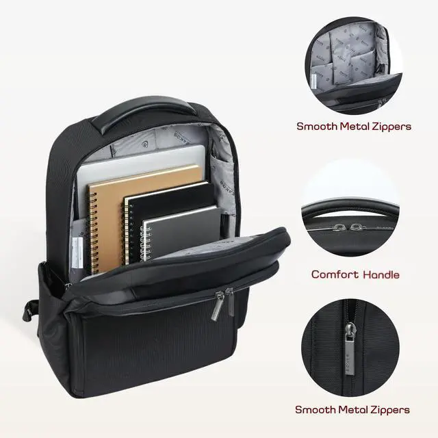 Microfiber Leather Accents: Designed for modern professionals, this laptop backpack for men and women features a sleek, minimalist design enhanced with refined microfiber leather accents. Crafted from durable polyester, it delivers a professional, executive look with improved durability and easy maintenance ideal for daily work and business travel. ^^ Spacious 15.6 Inch Laptop Backpack with
