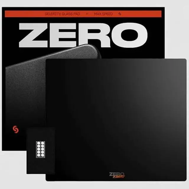 EXTRA-LARGE. 19.3 x 16.5 x 0.12 inch tempered glass gaming mouse pad built for competitive FPS players who need consistent speed and maximum space for flicks and tracking. Unlike cloth pads, the glide does not slow down over time. ^^ FULL STABILITY. Full 1mm silicone base covers the entire bottom surface for true anti-slip stability. The pad does not shift, lift at the corners, or move during fast swipes. Designed for aggressive low-sensitivity gaming. ^^ CONSISTENT GLIDE. Tempered glass surface keeps uniform speed across the whole pad. No slow spots, no worn areas, no fabric fraying, no sweat absorption.