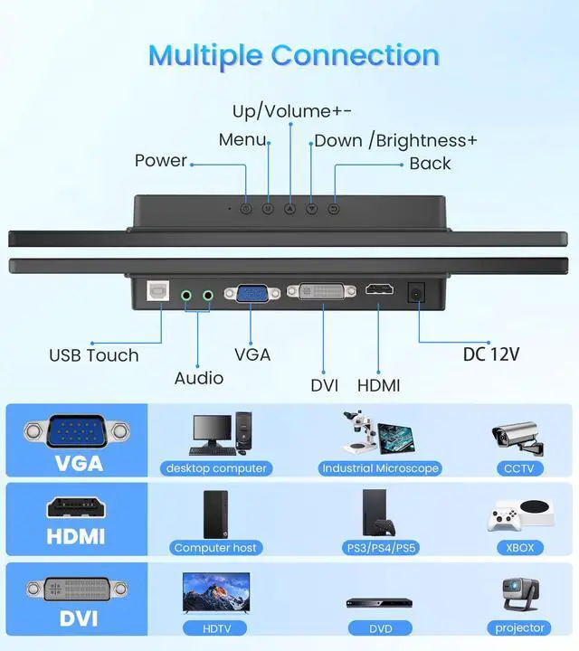 DVI Inputs: The 14 portable monitor compatible with laptops, PC, Mini PC, laptops, CCTV, Security, Kiosk, POS, Industrial medical devices and more. Support HDMI, VGA and DVI inputs.