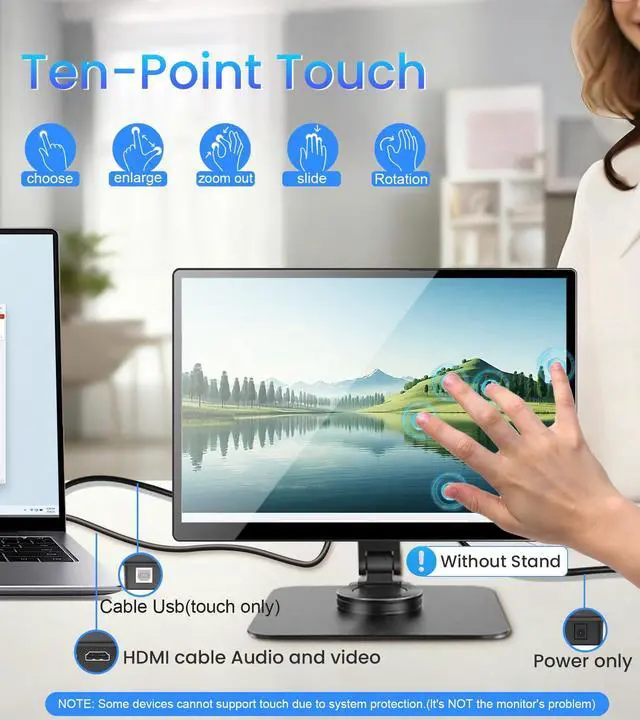 ^^ 10-point Touch Screen: 14 Inch Portable Monitor Touchscreen Adopts A 10-Point Capacitive Touch. Supports multi-touch, the touch is sensitive and can respond quickly, you can zoom in, zoom out, click, slide, move the cursor, etc. Enhance your work efficiency through intuitive touch.