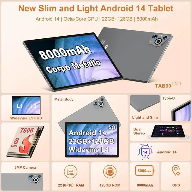 • Performance Boost: Android tablet with 128GB ROM + 22GB (6+16) RAM, supports up to 1TB expansion. Compatible with apps like Netflix, Facebook, YouTube, and Widevine L1 certified, effortlessly running games, multimedia, and office software