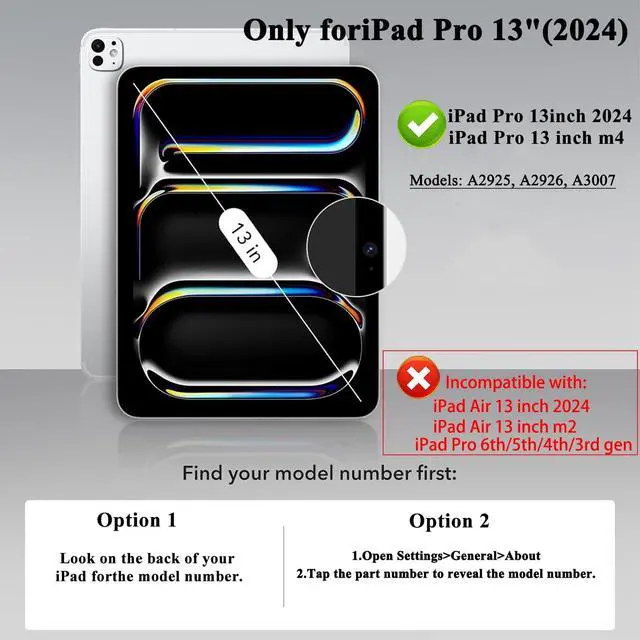 Compatibility: Designed exclusively for 2024 iPad Pro 13-inch (M4) Models A2925, A2926, A3007. Not for iPad Air M3 2025 / M2 2024, iPad Air model.
