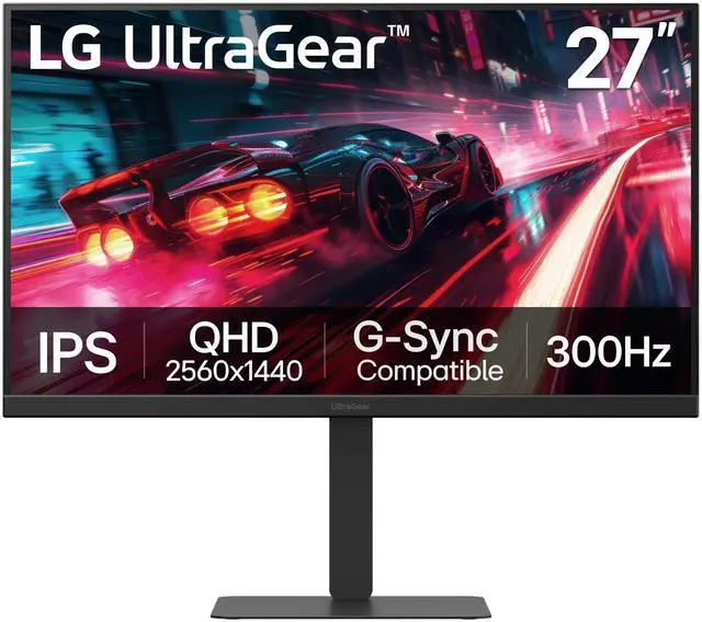 Gaming is about to get fast. Experience lightning-fast, crystal-clear gameplay with the 27" QHD IPS UltraGear gaming monitor, built for competitive performance and stunning visuals. A blistering 300Hz refresh rate and 1ms (GtG) response time deliver ultra-smooth motion, while up to 95% DCI-P3 color gamut expression and VESA DisplayHDR 400 bring games to life with incredible contrast and vibrant detail. NVIDIA G-SYNC compatibility and AMD FreeSync Premium ensure tear-free, responsive play. The sleek, design offers swivel, tilt, height, and pivot adjustability for the perfect setup. Plus, stay connected with USB-Type-C (15W PD), two HDMI 2.1 ports, and DisplayPort 1.4 making it the ultimate display for speed, precision, and immersive gaming.