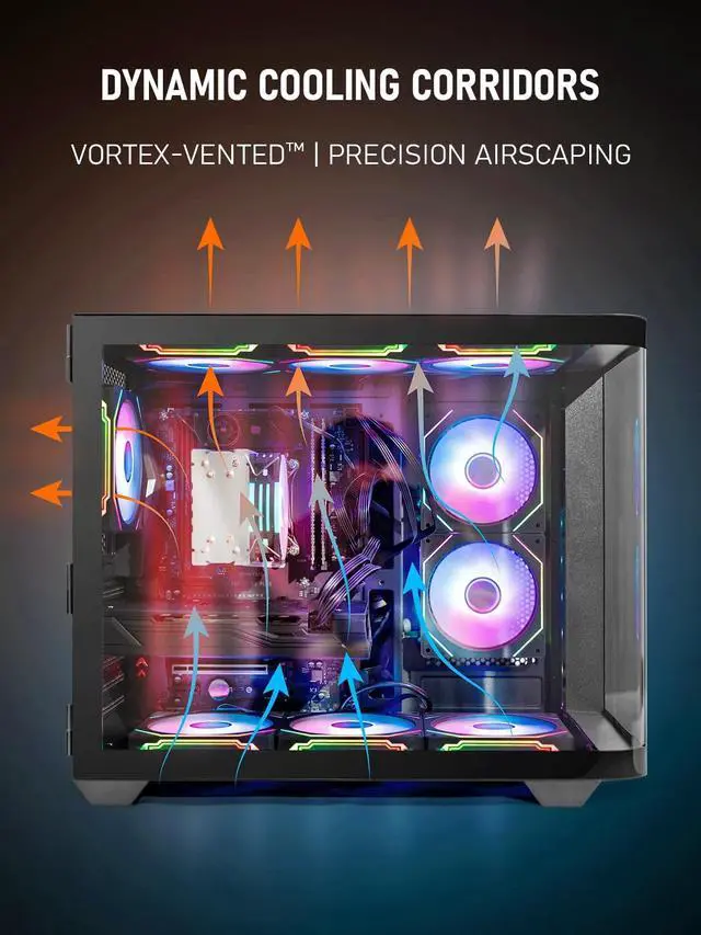 Efficient Cooling & ARGB LightingBuilt with a reliable air cooler and multiple ARGB fans to maintain optimal airflow and system stability. Customizable RGB lighting enhances the gaming setup with a modern, stylish look.