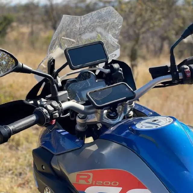We are excited to give you a preview of our new range of J-Mount Phone Mounts. Our phone mounts are designed based on the principle of vibration dampening, using a TPE rubber holder with our patented TPU plastic baseplate combination to provide a rigid mounting surface while keeping the product lightweight and retaining all the benefits of a silicone housing. The first two phone mounts that will be available are designed for an iPhone 7 Plus (Large model) with a UAG cover (inside dimensions of mount: 164.5 mm x 82.5 mm x 12mm) and the Samsung S20 (Medium model) with a UAG cover (inside dimensions of mount: 157.7 mm x 74.5 mm x 14mm). Due to the rubber being a soft, stretchy compound, you can fit alternative phones in the same mounts, provided their dimensions are approximately the same. The phone mount has a flat baseplate with an arrangement of mounting holes that allow you to mount your phone in portrait or landscape mode, as well as off-center if you need to make space for other mountings. You can easily mount it on any flat surface, and it also comes with the standard J-mount handlebar mounting, which allows you to mount your phone in portrait or landscape mode, as well as off-center if you need to make space for other mountings. You can easily mount it on any flat surface, and it also comes with the standard J-mount handlebar mounting, which allows you to mount it to a 30mm handlebar.