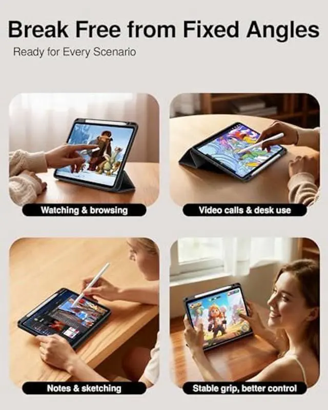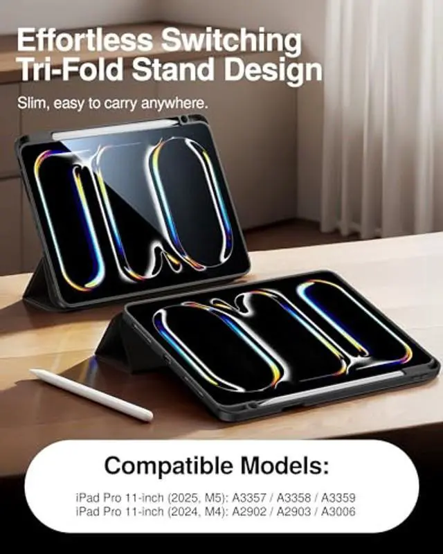 Note: Not compatible with other iPad models. Please check the model number (e. g., A2925) on the back of your device before purchase. ^^ Superior QualityThe hard back shell is equipped with a flexible TPU bumper that effectively protects your iPad from daily impacts. A soft microfiber lining on the inside prevents scratches on the tablet surface. The crystal-clear transparent back showcases the Apple icon and lets you personalize your case with stickers or photo inserts. ^^ Tri-Fold Stand CaseThe tri-fold design allows you to easily switch between viewing and typing modes, making it perfect for both work and everyday use. Enjoy hands-free convenience when watching videos, reading, or editing documents on your iPad. ^^ Auto Wake/Sleep FunctionBuilt-in magnets instantly wake your iPad when the cover is opened and put it to sleep when closed. This smart feature helps reduce battery drain and extend standby time. ^^ Built-in Pencil HolderSmartdevil case includes a dedicated slot for securely holding your Apple Pencil, so you can carry it with your iPad wherever you go. The Pencil is easy to store and remove when needed. (Apple Pencil not included.