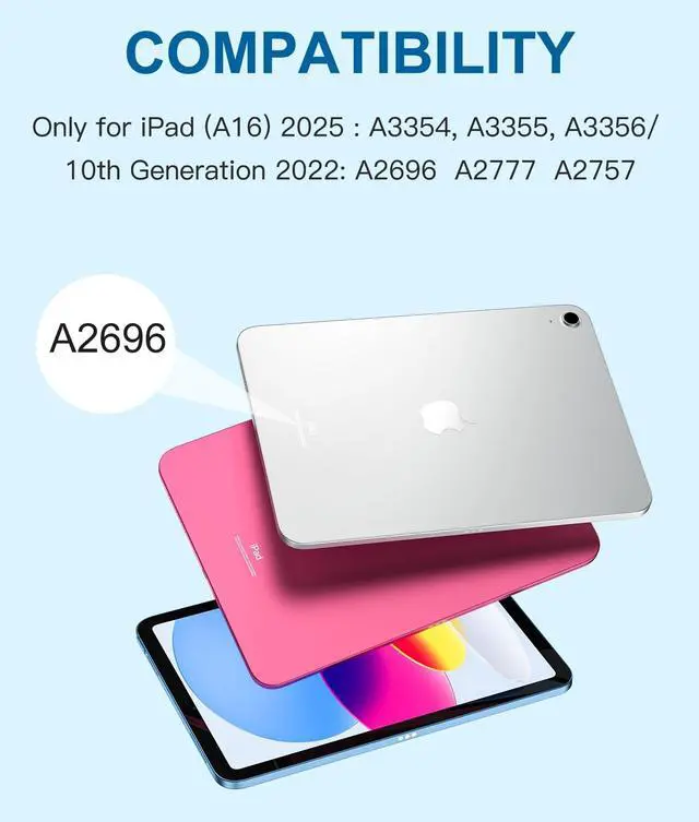 CompatibilityFor iPad (A16) 11th generation 11-inch 2025 (Model: A3354/A3355/A3356), For iPad 10th generation 10.9 -inch 2022 (Model: A2696/A2757/A2777). Not for any other models. Please check the model number No. "AXXXX" the bottom of the back of your tablet to confirm correct size before purchasing ^^ Quick Navigation TrackpadHarvopu for iPad keyboard (A16) 11th/ 10th generation built-in high sensitive trackpad, allows you enjoy the convenience of performing multi-finger gesture control (like tap, swipe, scroll and switch apps), which level up your productivity when browse the web, edit documents and more ^^ Magnetically Detachable KeyboardFor (A16) 11th/ 10th gen keyboard is magnetic and it can be strongly attached to the case or detach completely. When you do not need the keyboard can be stored away, easy to carry it on the go. It is easy, fast and stable to connect via BT, reconnect immediately turning it on ^^ Illuminated TypingHarvopu (A16) 11th/ 10th case with keyboard with a full row of the laptop-like iPadOS shortcuts is customized for your tablet, and allow you easily switch between adjusble 7 RGB pure backlit with 3 levels adjustable brightness, engaging yourself in a free and relaxed typing experience in any dim condition ^^ Multiple Viewing AngleThere are 3 anti-slip grooves design inisde of the case provides the perfect stand angle, so you can change where the tablet is on the case and adjust the screen angle this way for drawing or writing on, do more computerig, suitable for home, office or school use ^^ Long Life Battery Rechargeable KeyboardBuilt-in powerful 420mAh battery and enters energy-saving mode automatically if not in use for 15 minutes, which worry-free use and long standby time.