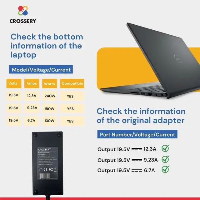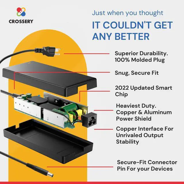 Smarter Smart Chip: As competitive gamers we understand that superior material quality drives peak performance, so we engineered this Dell power cord for laptops from professional grade copper, aluminum shield, heavy duty wire insulation, copper interface, not to mention overcharge and discharge protection. ^^ Dont Settle - Crosserys Industry Leading Guarantee means you can take this home, get it connected in seconds and discover the difference for 60 days before agreeing with us that its the best gaming laptop charger on market. Were that confident youll say choosing Crossery was your best decision yet.
